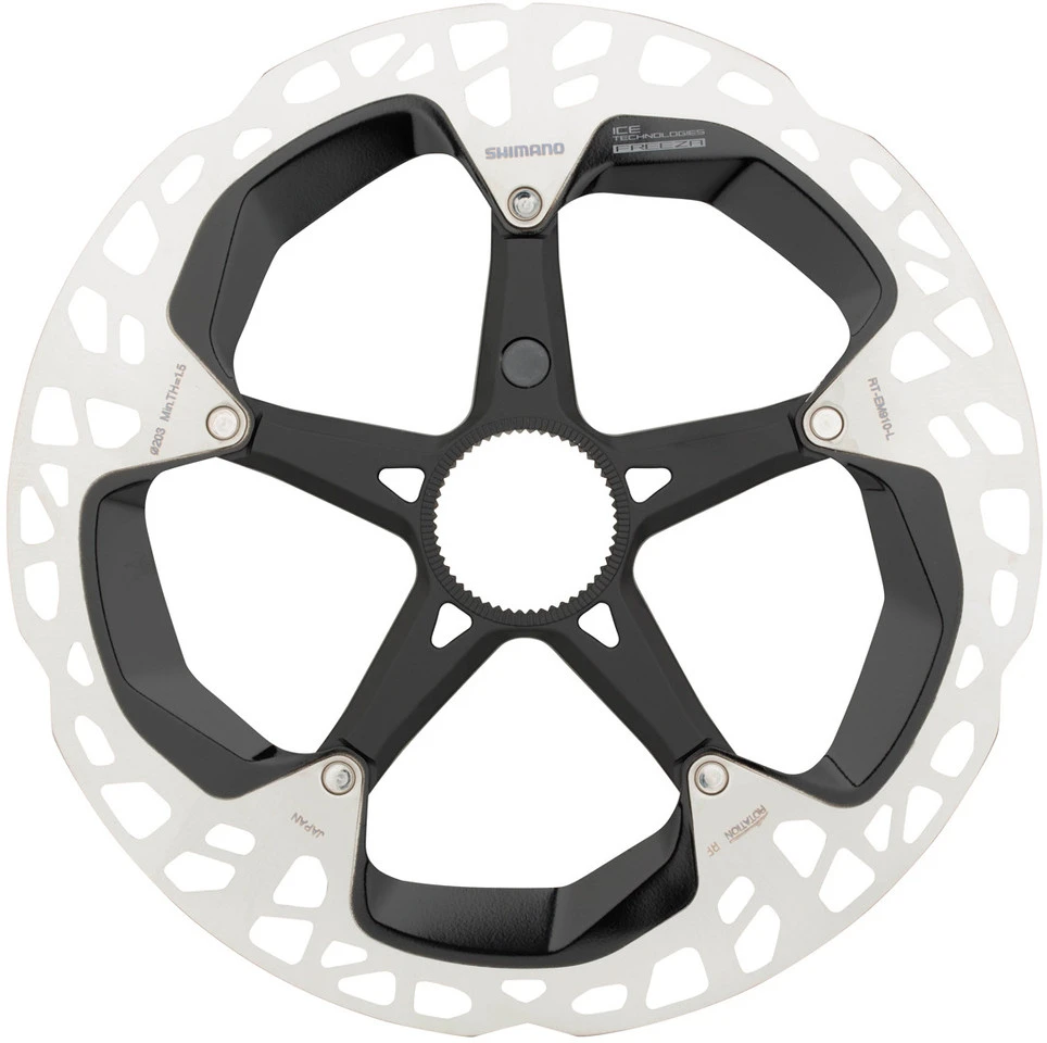 Die Shimano RT-EM910 Center Lock Bremsscheibe wurde für E-Bike-Fahrer mit STEPS Motor entwickelt, die das Maximum an Bremsperformance und Hitzekontrolle fordern. Dank Ice-Tech FREEZA Sandwichverbund leitet RT-EM910 die entstehende Wärme perfekt ab und trägt so zu einer konstanten Leistung auch auf steilen Abfahrten bei. Die Bremsscheibe verfügt über einen Lockring mit Außenverzahnung und wird mit einem Magneten für den SM-DUE11 oder EW-SS301 Hinterrad-Geschwindigkeitssensor geliefert. Sie lässt sich mit zahlreichen Scheibenbremsen und sowohl organischen wie gesinterten Belägen verwenden.