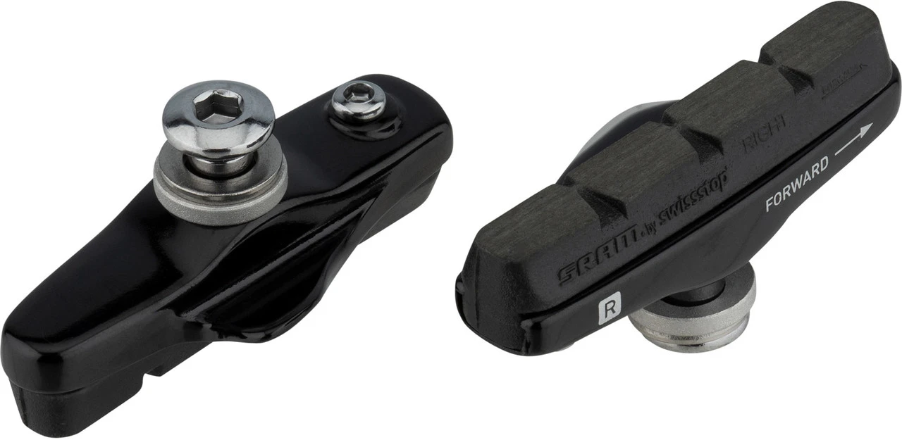 Diese Cartridge Bremsschuhe von SRAM sind direkt mit Swissstop Bremsgummis ausgestattet und passen an die Apex Felgenbremse. Sie sind geeignet für Laufräder mit Aluminiumfelgen. Zwei Befestigungsschrauben und passende Unterlegscheiben befinden sich im Lieferumfang.